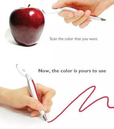 無論任何時候你看到了心儀的顏色,只需要將筆頭靠近它,然後簡單掃描一下,顏色的資料便立即傳送到取色筆中,隨即,內部的處理晶片便會控制墨水匣進行精確調色,這樣你就能從筆尖畫出同樣的顏色了。超想要有木有!