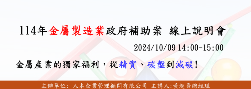 • 114年金屬製造業政府補助案 線上說明會